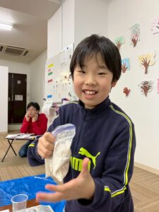 活動で小麦粉ねんどを行いました。小麦粉アレルギーの児童も