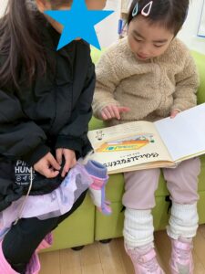 子どもたちは沢山ある絵本に夢中でした😆✨