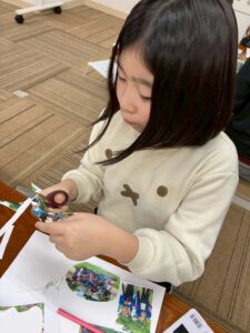 自分の好きなように絵を描いたり、塗り絵をして貼りつけたり