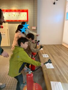 消火器の使い方を学びました。みんな上手に火を消せていましたよ🔥